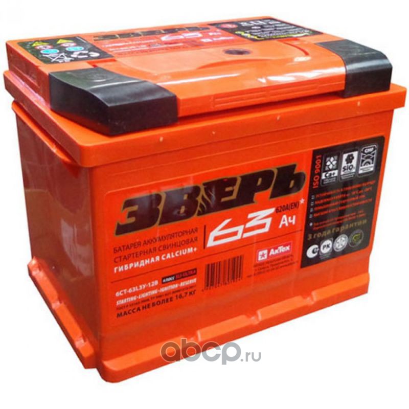 ЗВЕРЬ | ЗВ633L | Батарея аккумуляторная 60А/ч 600А прямая полярн. стандартные (Европа) клеммы | |