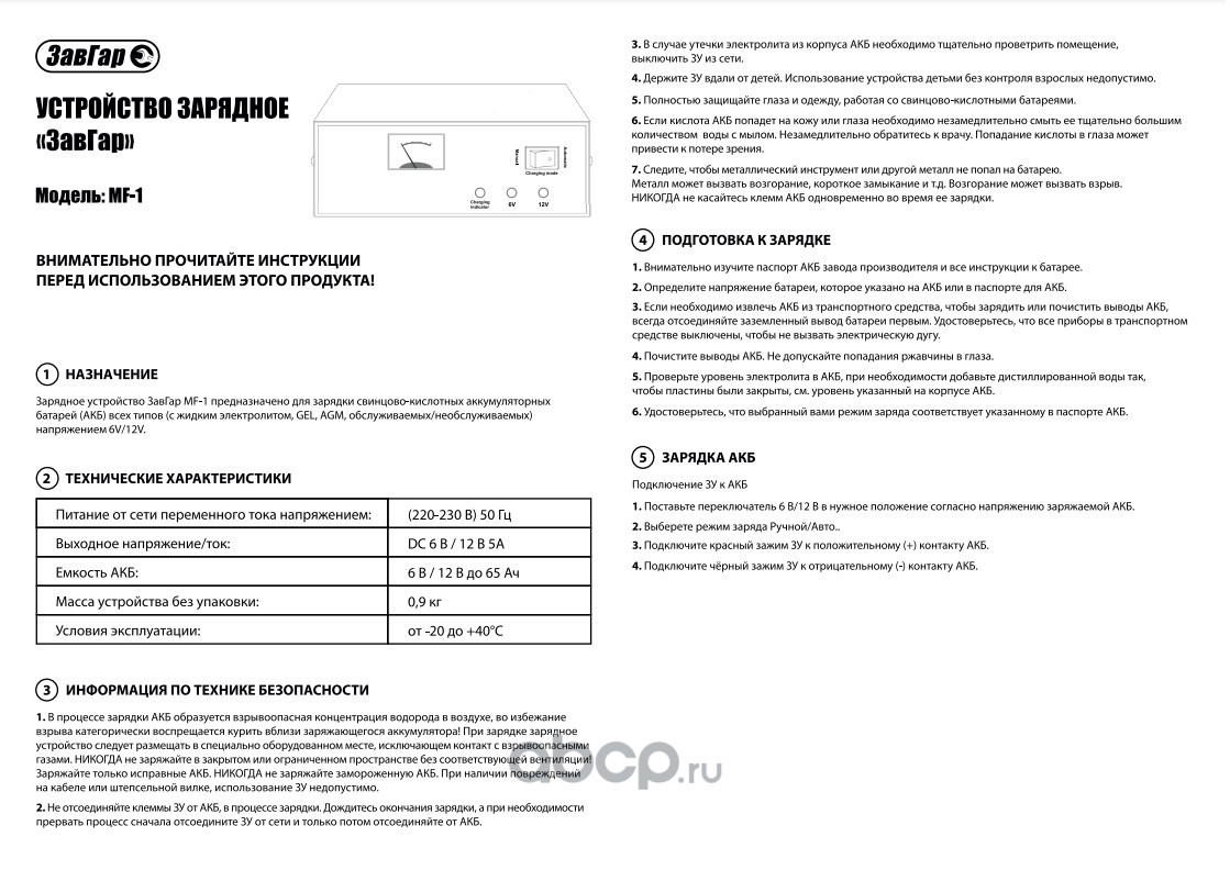 Зарядное устройство АКБ импульсное MF-1 автомат 6/12В 8,5А MF-1