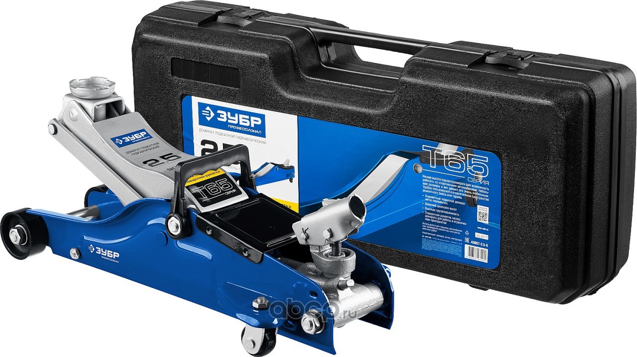| Зубр | 4305725K | ЗУБР Т-65-K 2.5т 90-360мм подкатной домкрат с низким подхватом и поворотной ручкой в кейсе, Профессионал | ||