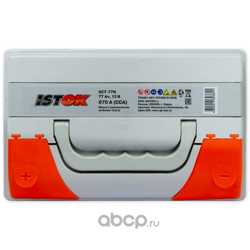 | ИСТОК | 6CT77NR | Батарея аккумуляторная ISTOK 77А/ч 670А 12V Обратная полярн. стандартные клеммы | ||