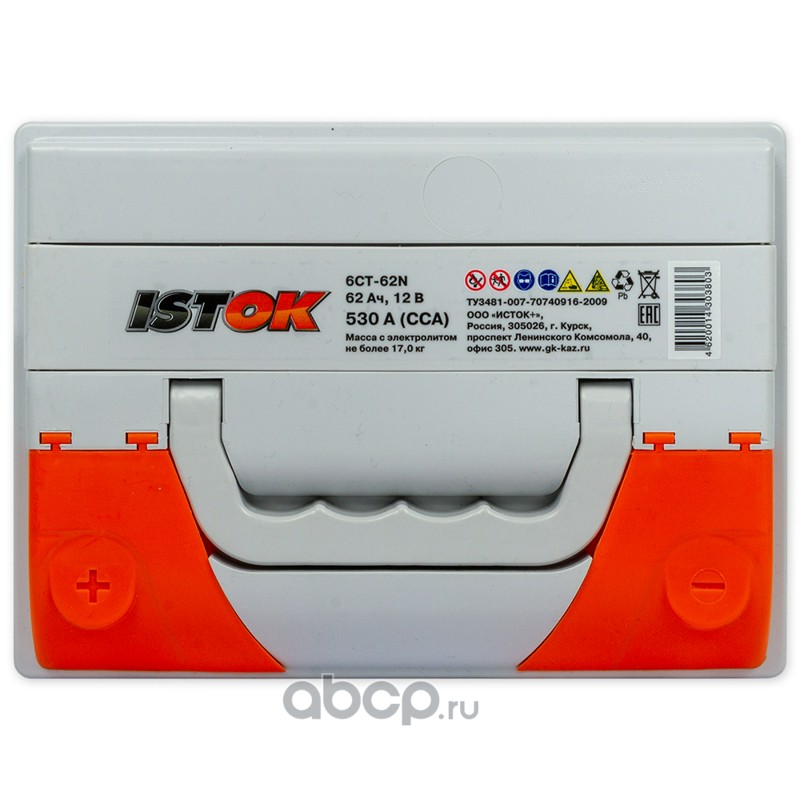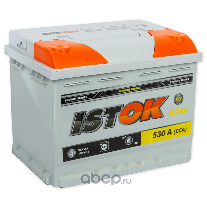 | ИСТОК | 6CT62N | Батарея аккумуляторная ISTOK 62А/ч 530А 12V Прямая полярн. стандартные клеммы | ||