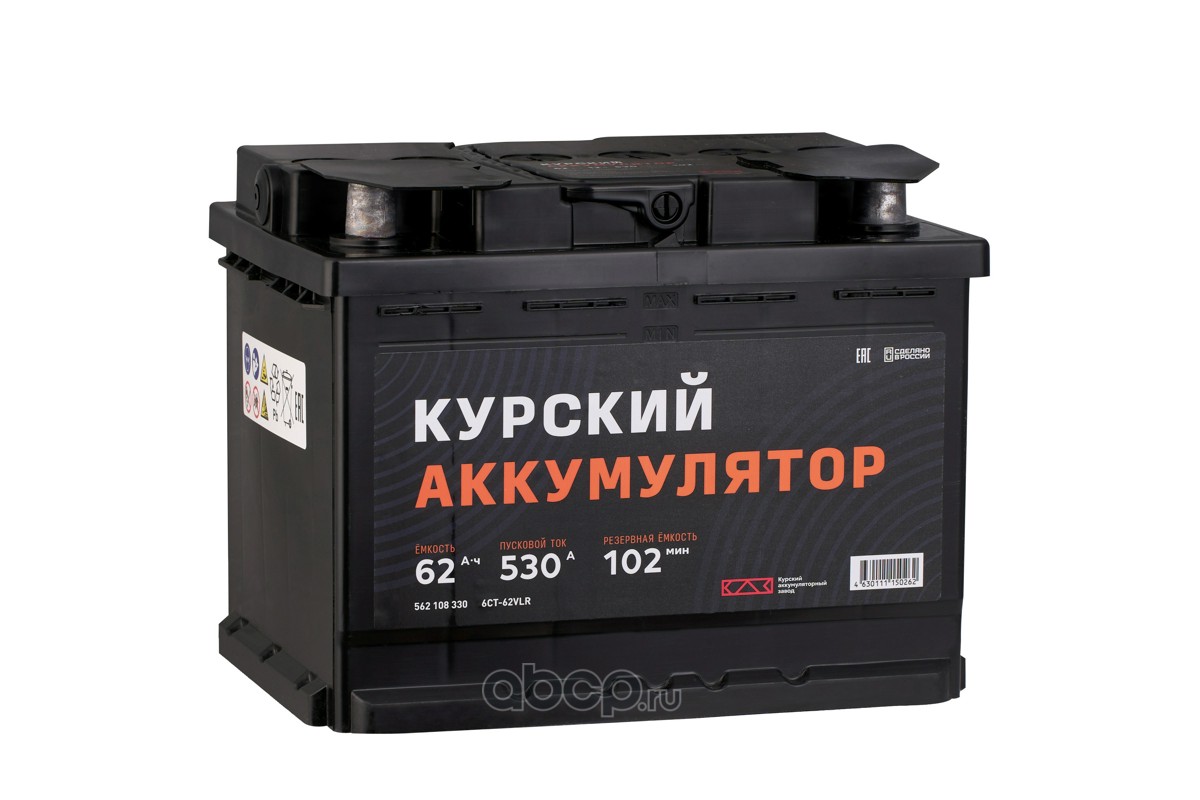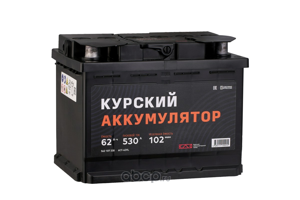 КАЗ 562107330 Батарея аккумуляторная 62А/ч 530А 12В прямая полярн. стандартные (Европа) клеммы