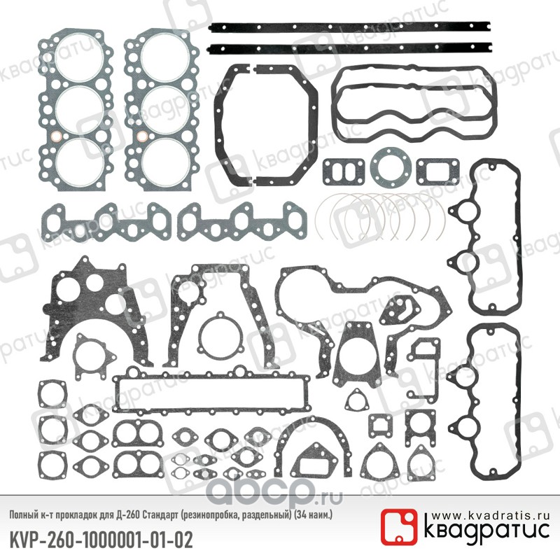 Полный к-т прокладок для Д-260 Стандарт (резинопробка, раздельный) (34 наим.)