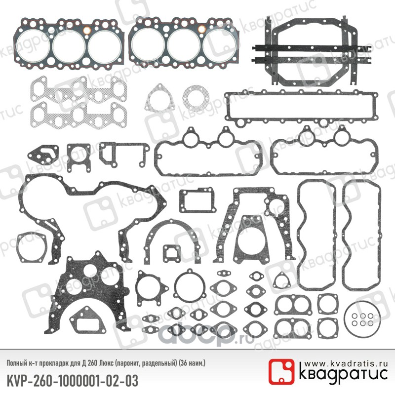 Полный к-т прокладок для Д 260 Люкс (паронит, раздельный) (36 наим.)
