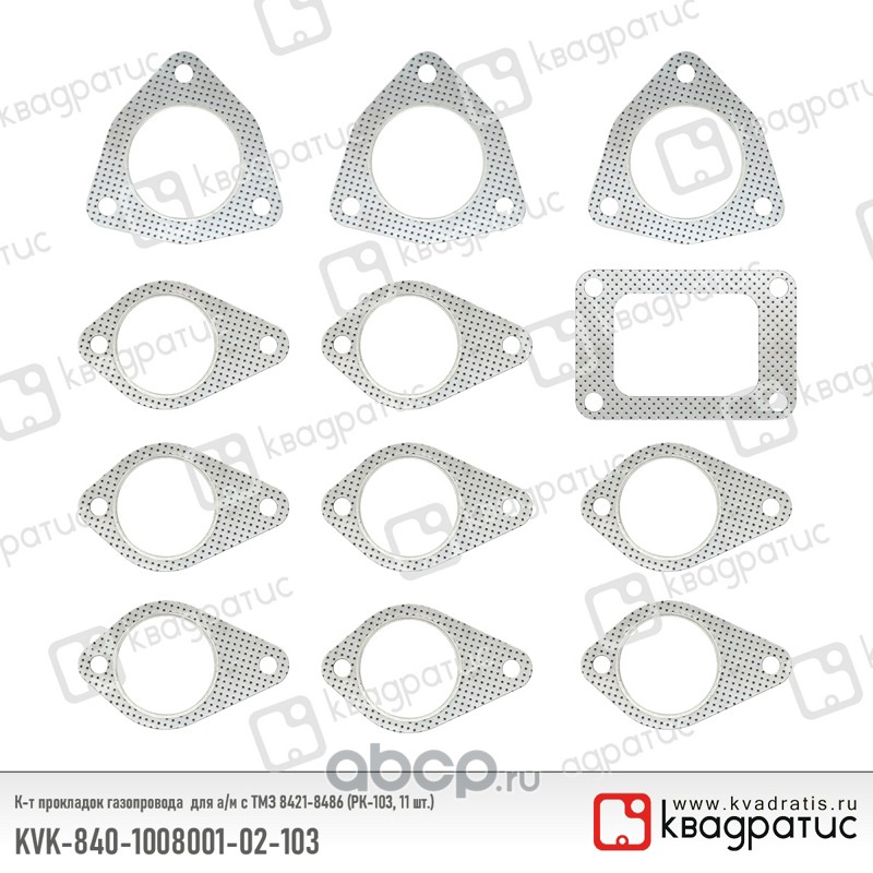 | КВАДРАТИС | KVK840100800102103 | К-т прокладок газопровода для ТМЗ 8421-8486 (РК-103, 11 шт.) | ||