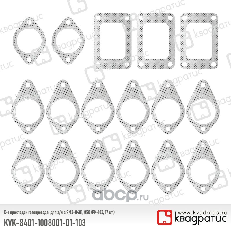 | КВАДРАТИС | KVK8401100800101103 | К-т прокладок газопровода для ЯМЗ-8401, 850 (РК-103, 17 шт.) | ||