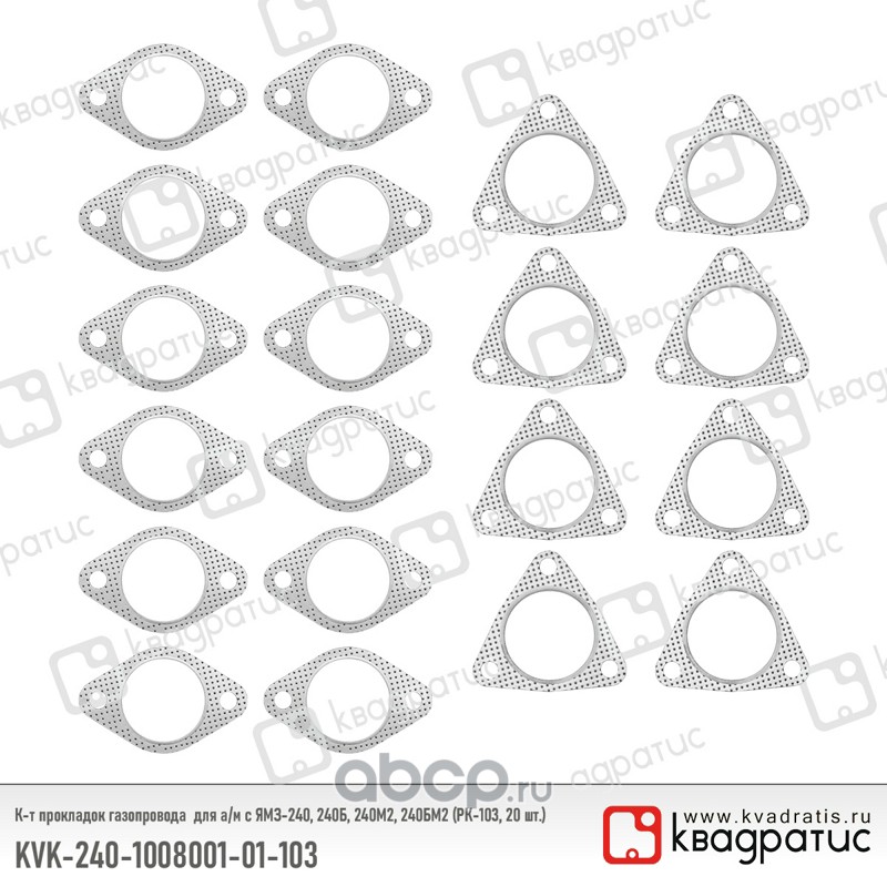 | КВАДРАТИС | KVK240100800101103 | К-т прокладок газопровода для ЯМЗ-240, 240Б, 240М2, 240БМ2 (РК-103, 20 шт.) | ||