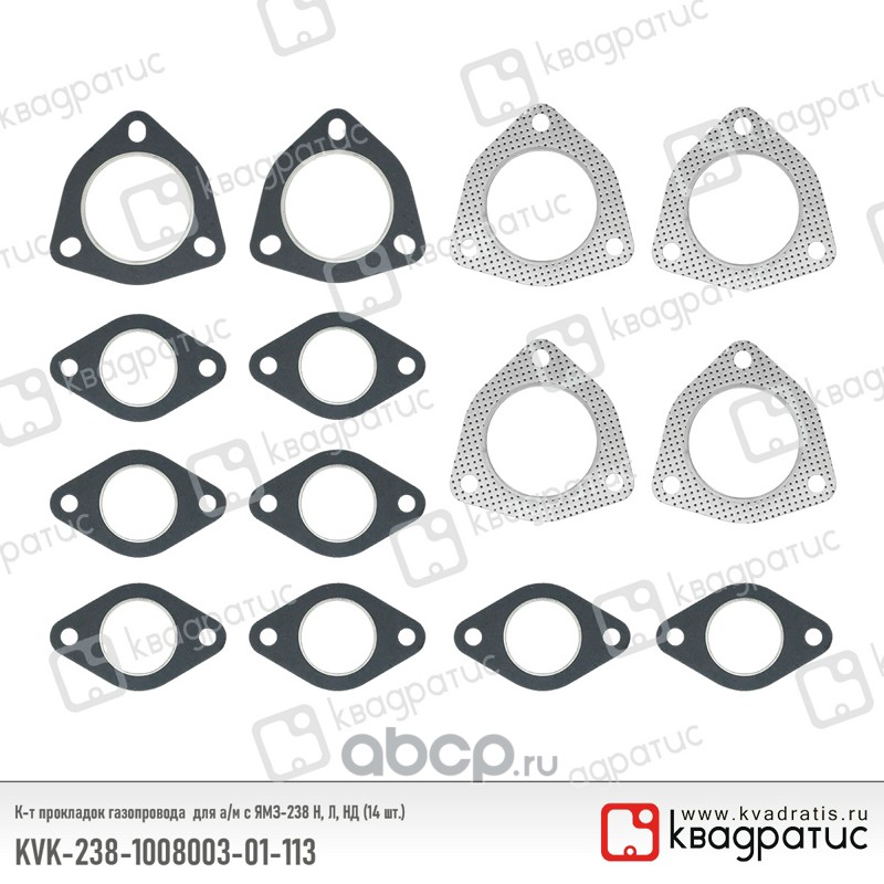 | КВАДРАТИС | KVK238100800301113 | К-т прокладок газопровода для ЯМЗ-238 Н, Л, НД (14 шт.) | ||