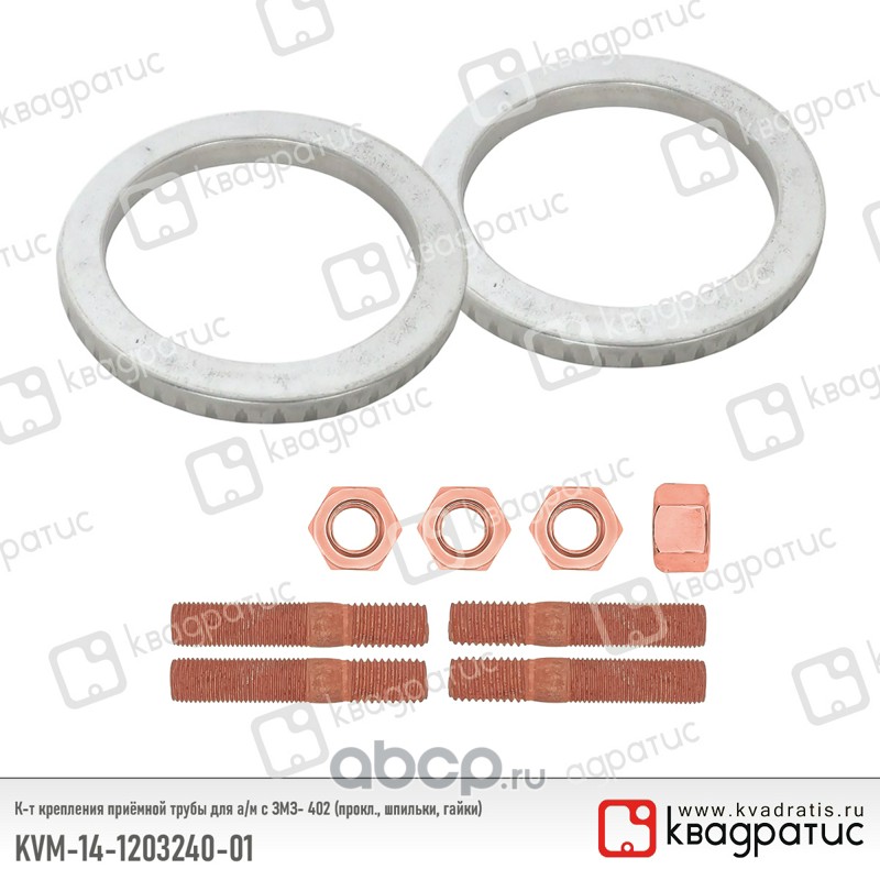 | КВАДРАТИС | KVM14120324001 | К-т крепления приёмной трубы для ЗМЗ- 402 (прокл., шпильки, гайки) | ||