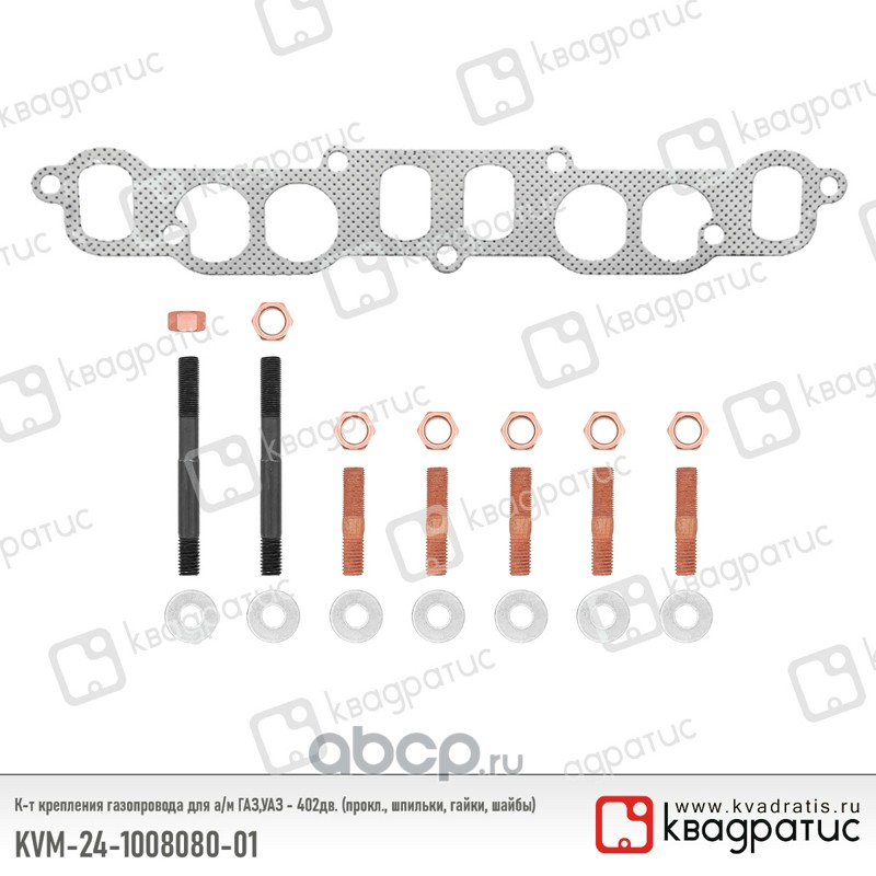 | КВАДРАТИС | KVM24100808001 | К-т крепления газопровода для ГАЗ,УАЗ - 402дв. (прокл., шпильки, гайки, шайбы) | ||
