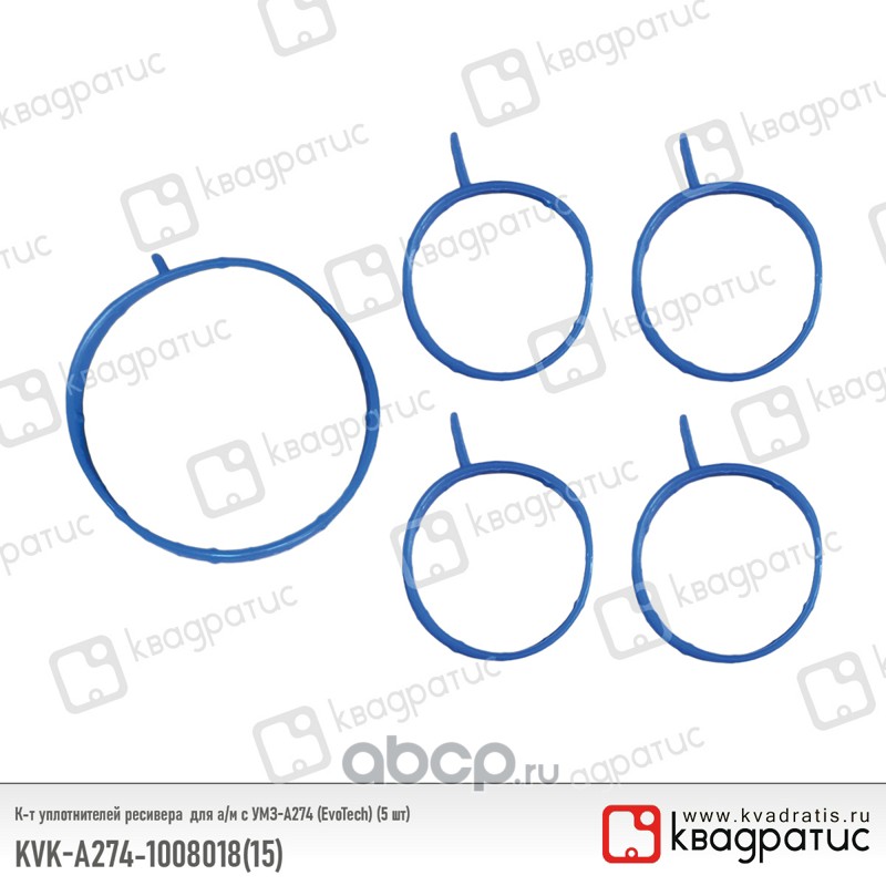 | КВАДРАТИС | KVKА274100801815 | К-т уплотнителей ресивера для УМЗ-А274 (EvoTech) (5 шт) | ||