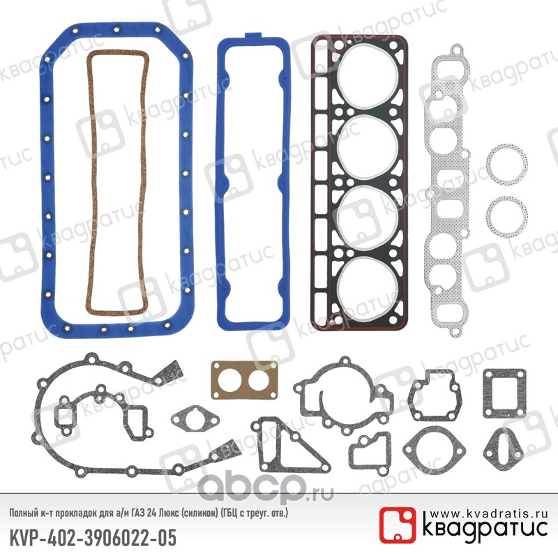 Полный к-т прокладок для ГАЗ 24 Люкс (силикон) (ГБЦ с треуг. отв.)