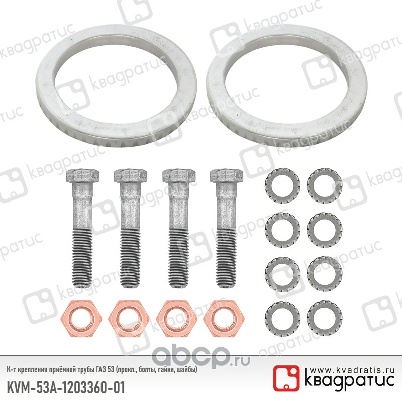 К-т крепления приёмной трубы ГАЗ 53 (прокл., болты, гайки, шайбы)