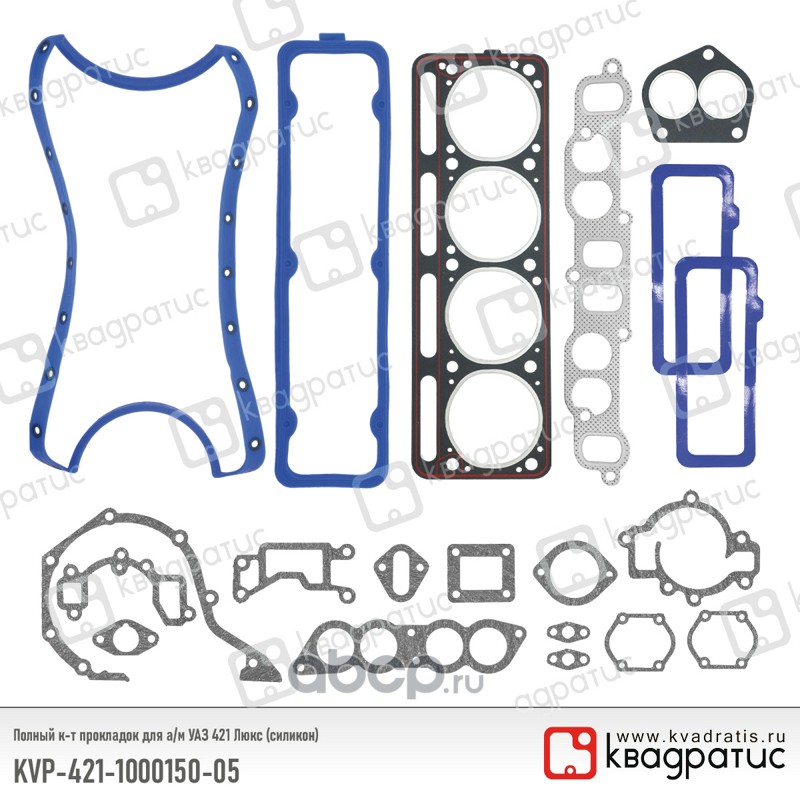 | КВАДРАТИС | KVP421100015005 | Полный к-т прокладок для УАЗ 421 Люкс (силикон) | ||