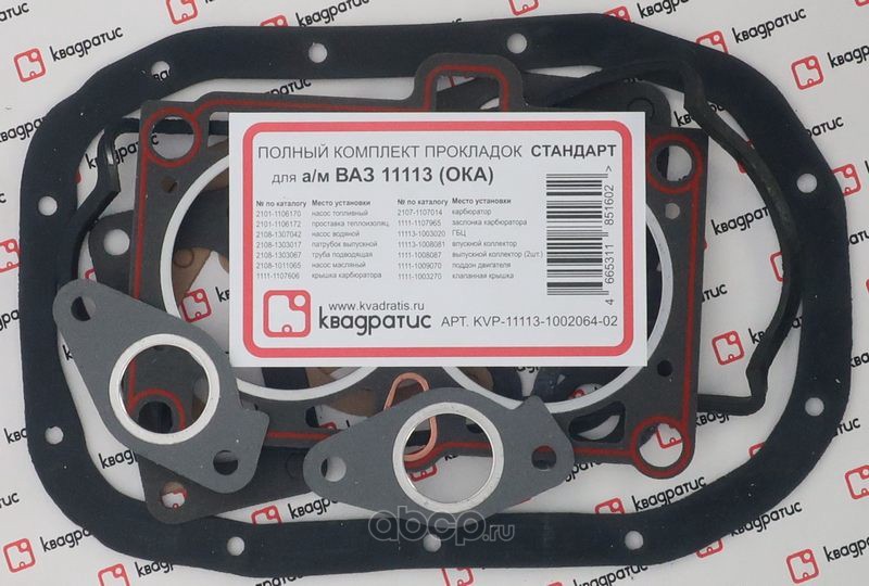 | КВАДРАТИС | KVP11113100206402 | Полный к-т прокладок для ВАЗ 11113 (ОКА) Стандарт | ||