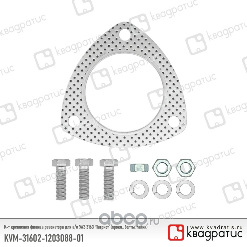 | КВАДРАТИС | KVM31602120308801 | К-т крепления фланца резонатора для УАЗ 3163 "Патриот" (прокл., болты, гайки) | ||