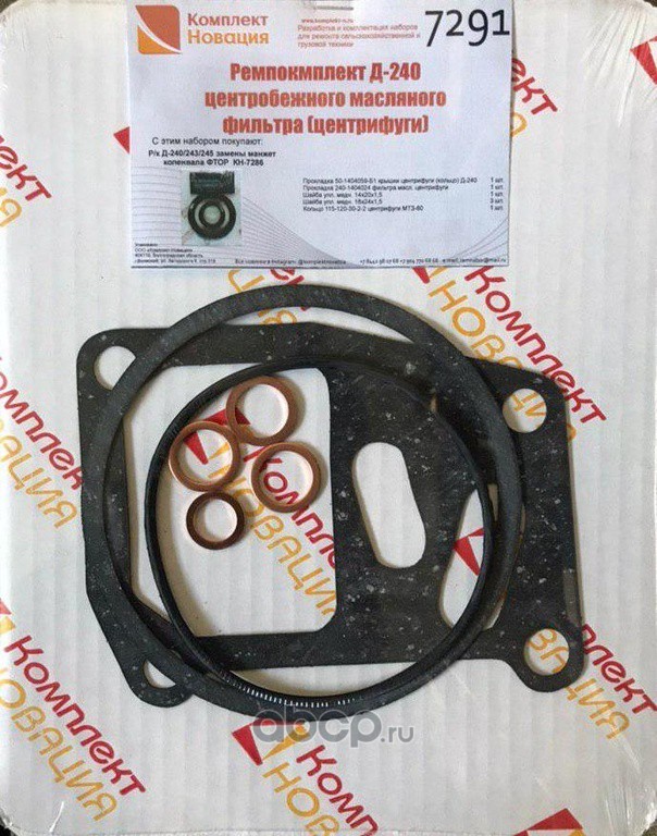 | Комплект НОВАЦИЯ | КН7291 | Ремкомплект Д-240 центробежного масляного фильтра центрифуги(паронит,резина,медь) | ||
