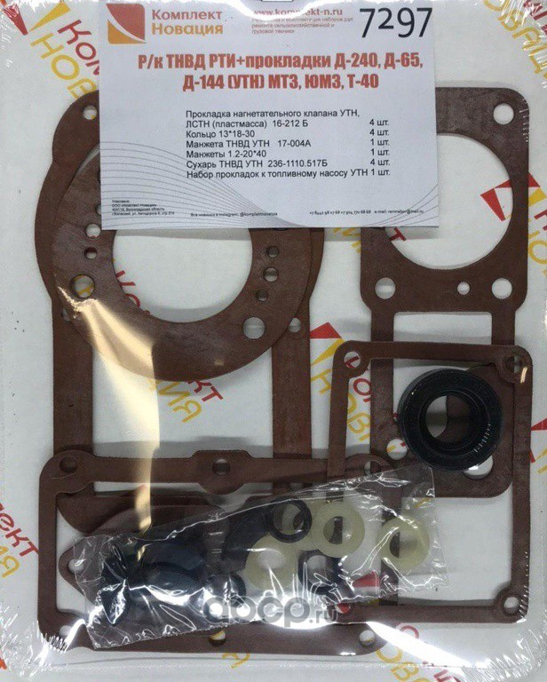 | Комплект НОВАЦИЯ | КН7297 | Ремкомплект ТНВД РТИ+прокладки Д-240, Д-65, Д-144 (УТН) МТЗ, ЮМЗ, Т-40 | ||