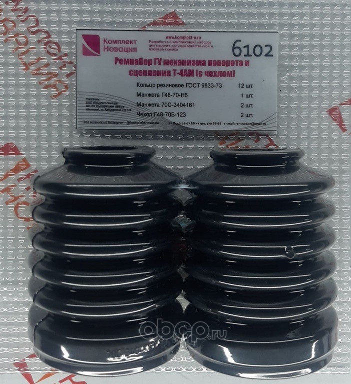 | Комплект НОВАЦИЯ | КН6102 | Ремкомплект ГУР механизма поворота и сцепления Т-4АМ (с чехлом) | ||