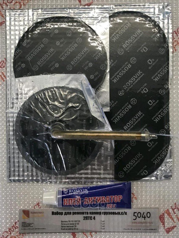 | Комплект НОВАЦИЯ | КН5040 | Набор для ремонта камер грузовых,с/х 2ПТС 4(вентиль+латки+клей) | ||