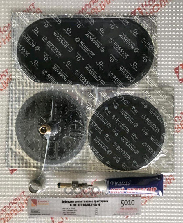 | Комплект НОВАЦИЯ | КН5010 | Набор для ремонта камер тракторных К-700, МТЗ-80/82, Т-40/16(вентиль+латки+клей) | ||