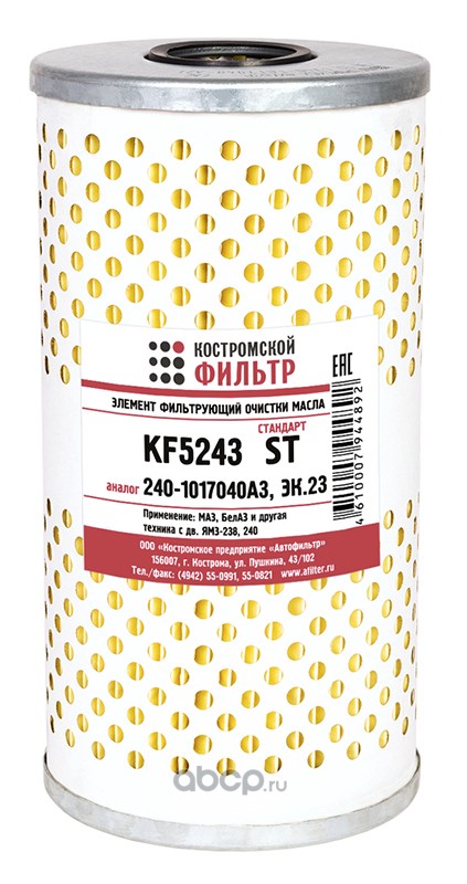 Костромской фильтр KF5243ST Фильтр масляный элемент, с уплотн. кольцами