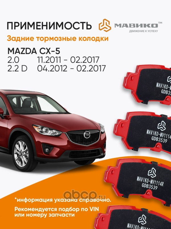 | МАВИКО | MV1114R | Колодки тормозные задние | ||