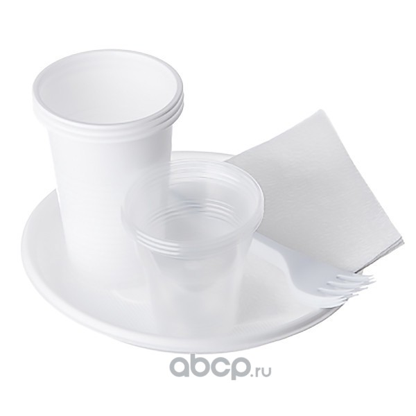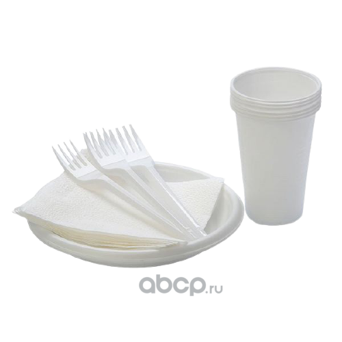 Набор "Шашлычок" (6 белых стаконов, 6 дес. белых тарелок, 6 белых вилок, 6 белых салфеток)