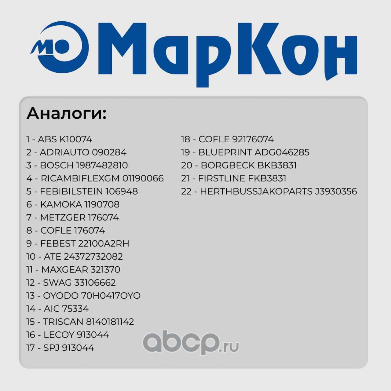 | МарКон | 19900175 | Тормозные колодки для иностранных АМ | ||