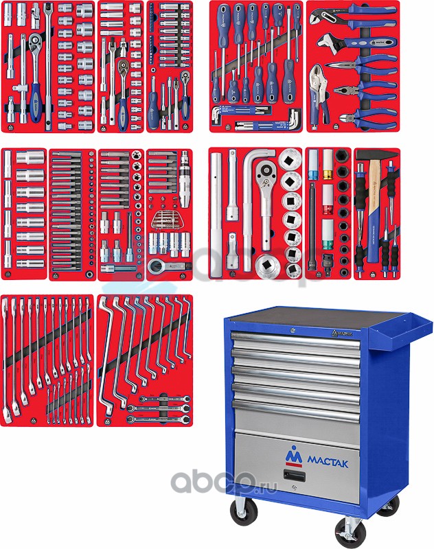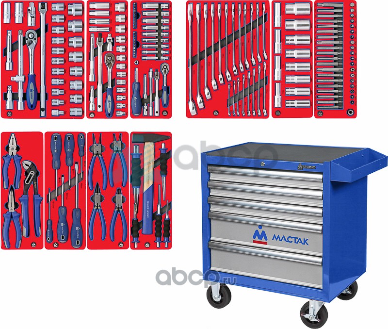 МАСТАК Набор инструментов ""СТАНДАРТ"" в синей тележке, 186 предметов