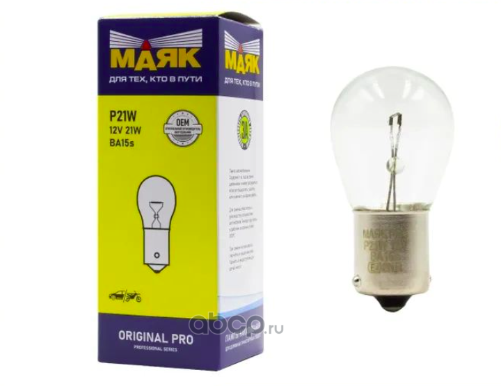 | Маяк | 0121310 | Лампа P21W 12V 21W BA15s ORIGINAL PRO | ||