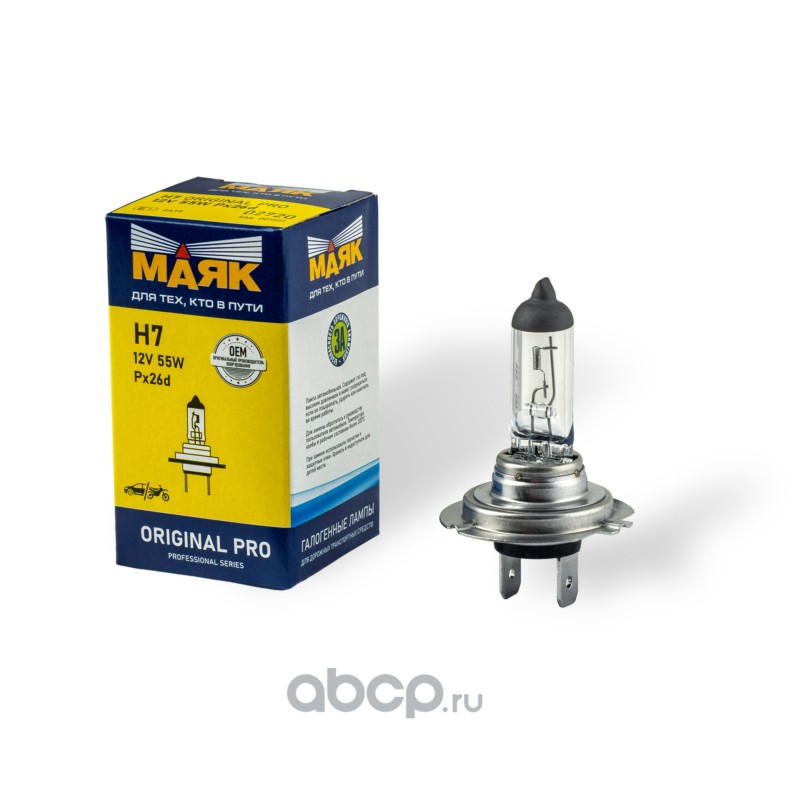 | Маяк | 02720 | Лампа Н7 12V 55W PX26d ORIGINAL PRO "Маяк" OEM 02720 | ||