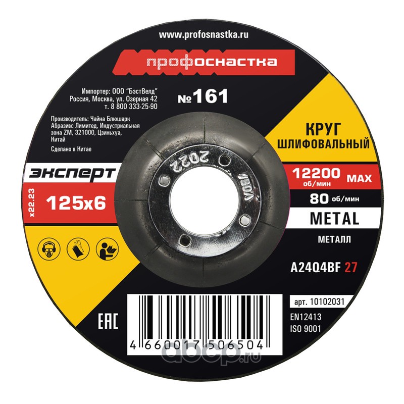 | ПРОФОСНАСТКА | 10102031 | Круг шлифовальный 161 125*6*22 мм Эксперт тип 27 5/25/100 | ||