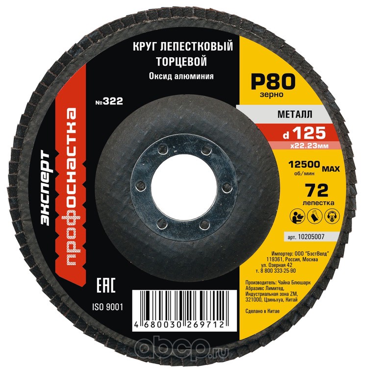 | ПРОФОСНАСТКА | 10205007 | Круг лепестковый КЛТ 322 D125/80/72 оксид алюминия 10/200 коричн/серый | ||