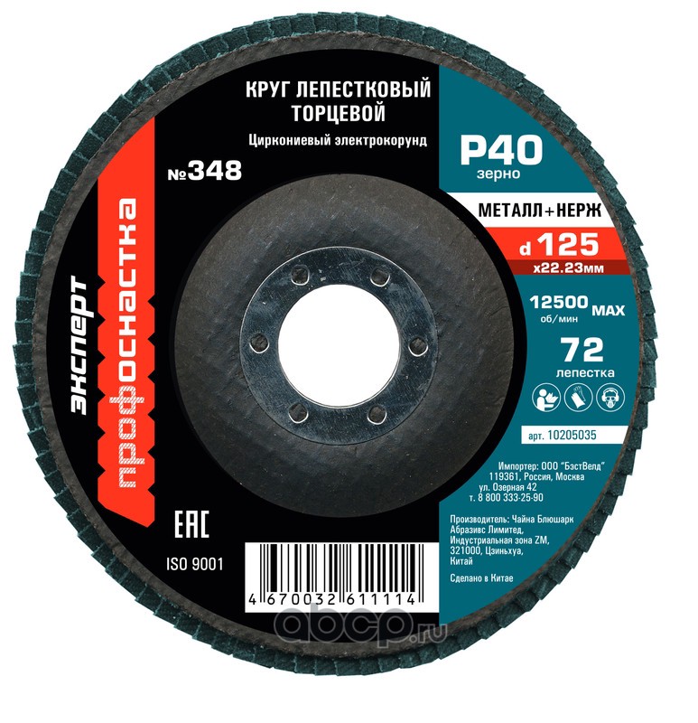 | ПРОФОСНАСТКА | 10205035 | Круг лепестковый КЛТ 348 D125/40 цирконий 10/200 СИНИЙ | ||