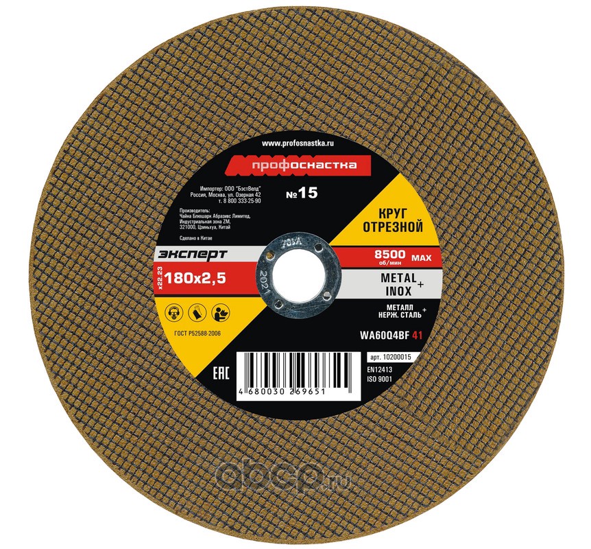 | ПРОФОСНАСТКА | 10200015 | !Круг отрезной 015 180*2,5*22 мм Эксперт тип 41 20/100 | ||