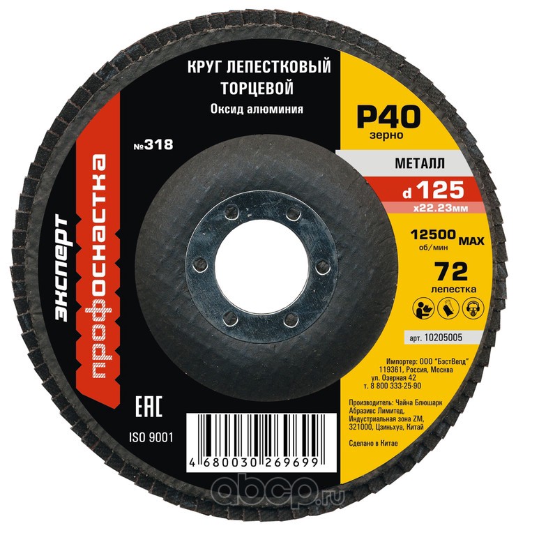 | ПРОФОСНАСТКА | 10205005 | Круг лепестковый КЛТ 318 D125/40/72 оксид алюминия 10/200 коричн/серый | ||
