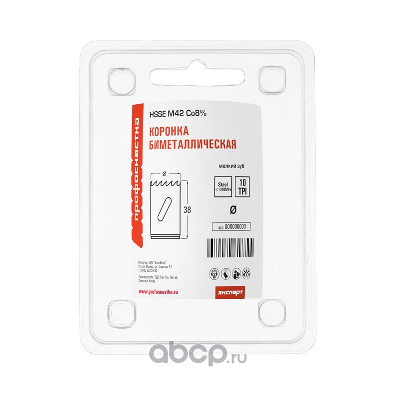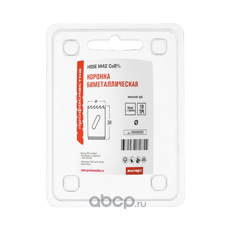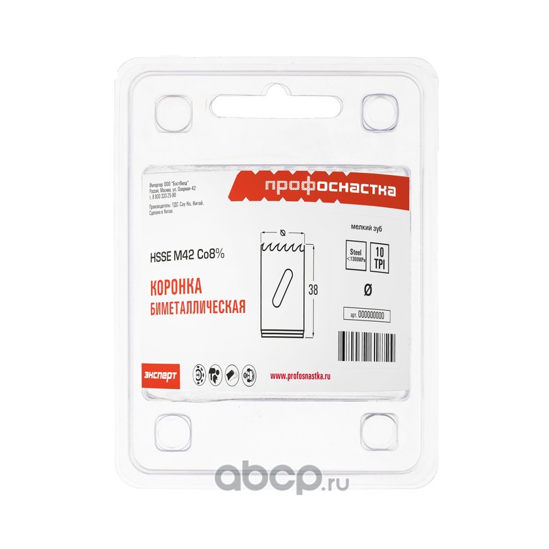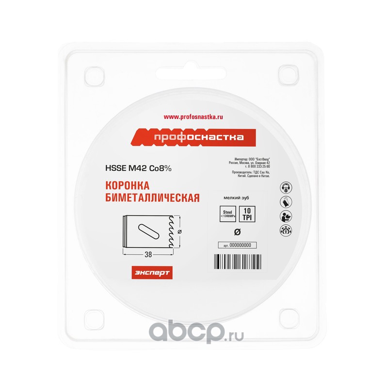 | ПРОФОСНАСТКА | 80102031 | Коронка бимет. №331 мелк. зуб D=44/38 мм HSSE M42 1/24 | ||
