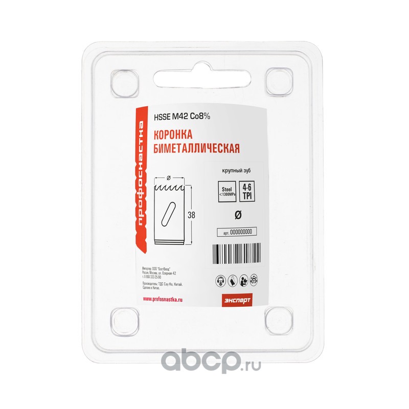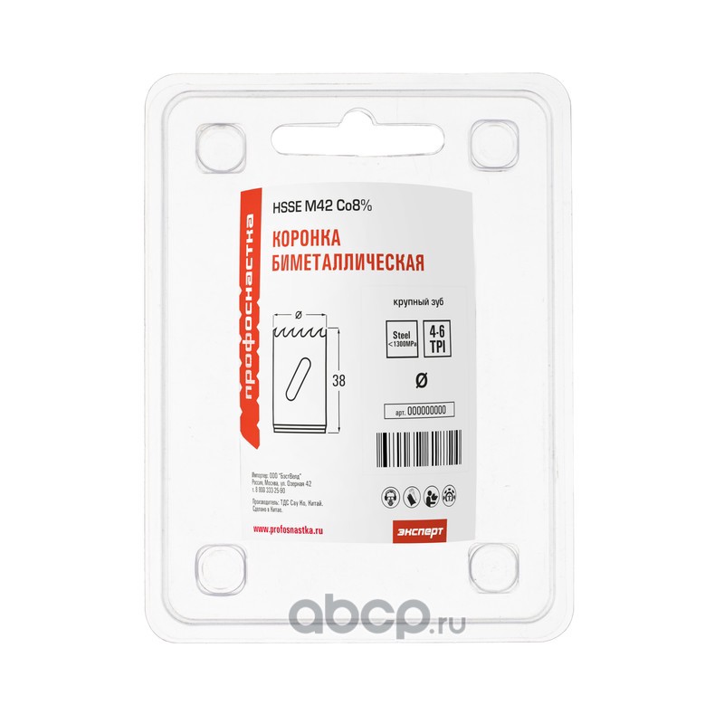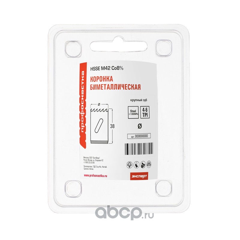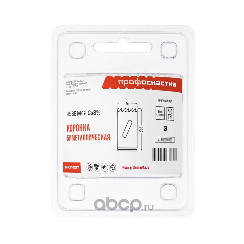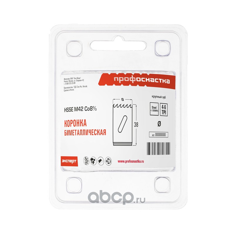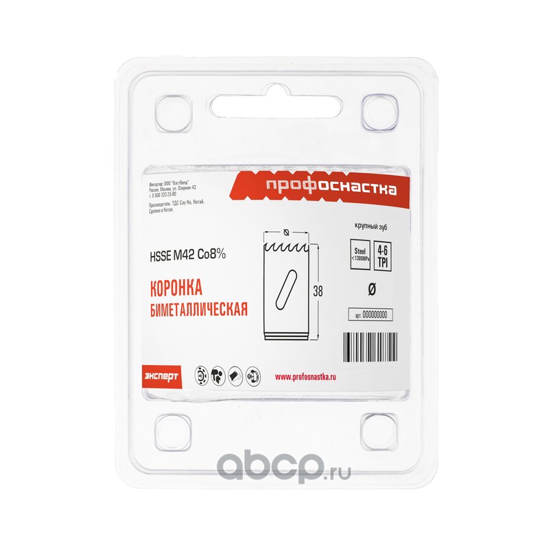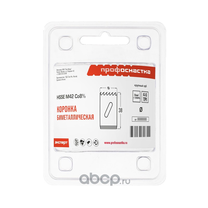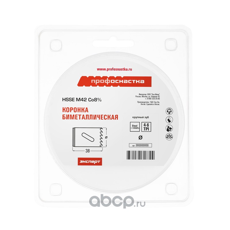 | ПРОФОСНАСТКА | 80101025 | Коронка бимет. №025 крупн. зуб D=38/38 мм HSSE M42 1/42 | ||
