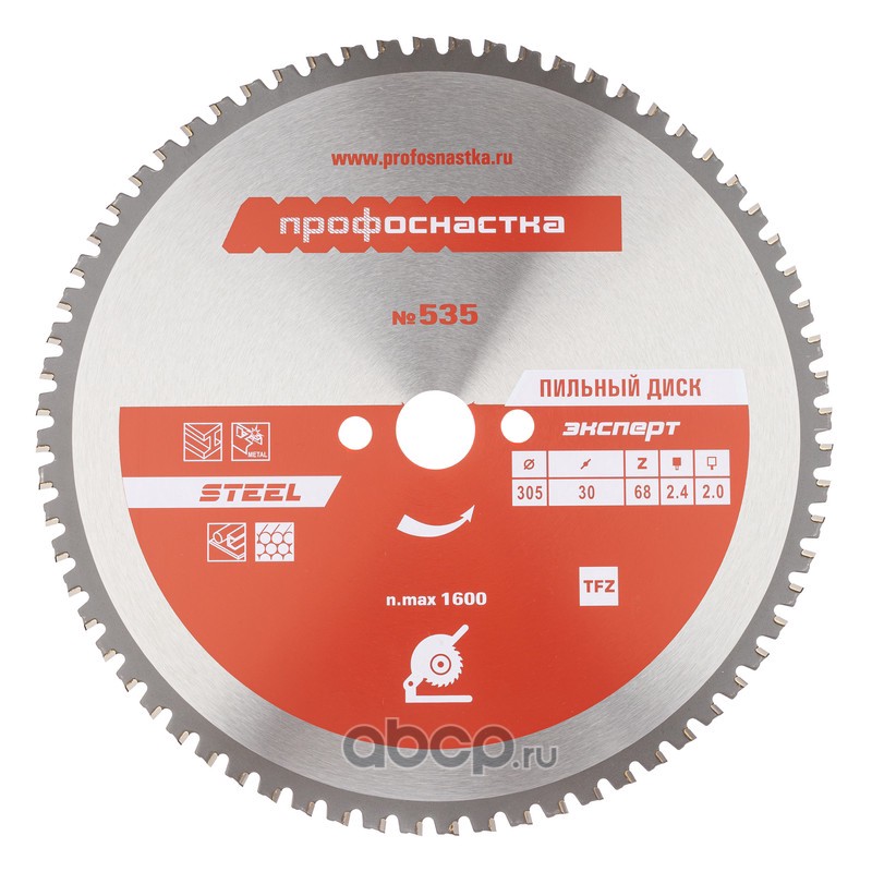 | ПРОФОСНАСТКА | 60402010 | Пильный диск 535 эксперт 305*Z68*25,4/30 TFZ (0) STEEL 1/25 шт | ||