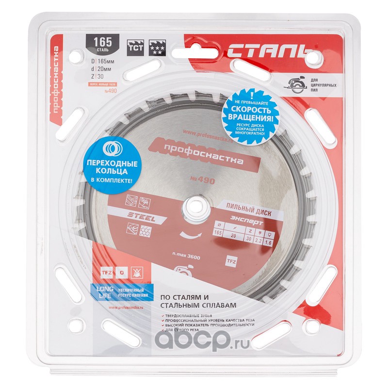 | ПРОФОСНАСТКА | 60401010 | Пильный диск 490 Эксперт 165*Z30*16/20 TFZ (0) STEEL 1/25 | ||