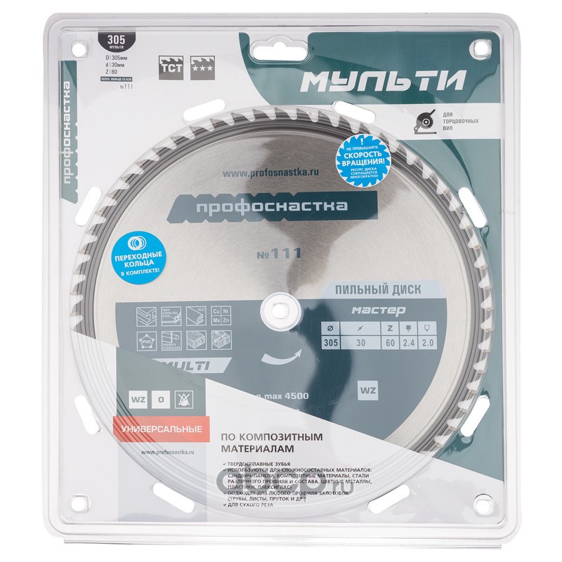 | ПРОФОСНАСТКА | 60102031 | Пильный диск 111 Мастер 305*Z60*25,4/30 WZ MULTI | ||