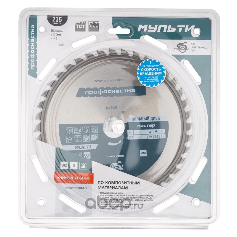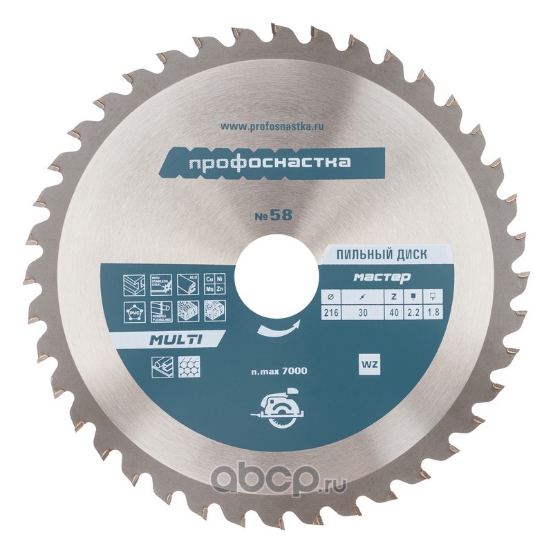 | ПРОФОСНАСТКА | 60101058 | Пильный диск 058 Мастер 216*Z40*30 WZ MULTI | ||