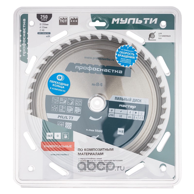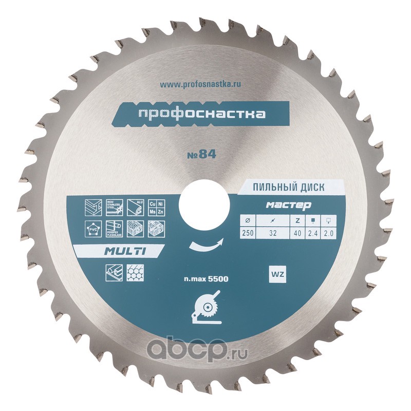 | ПРОФОСНАСТКА | 60102004 | Пильный диск 084 Мастер 250*Z40*30/32 WZ MULTI 1/25 | ||