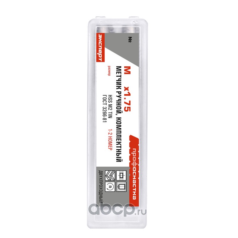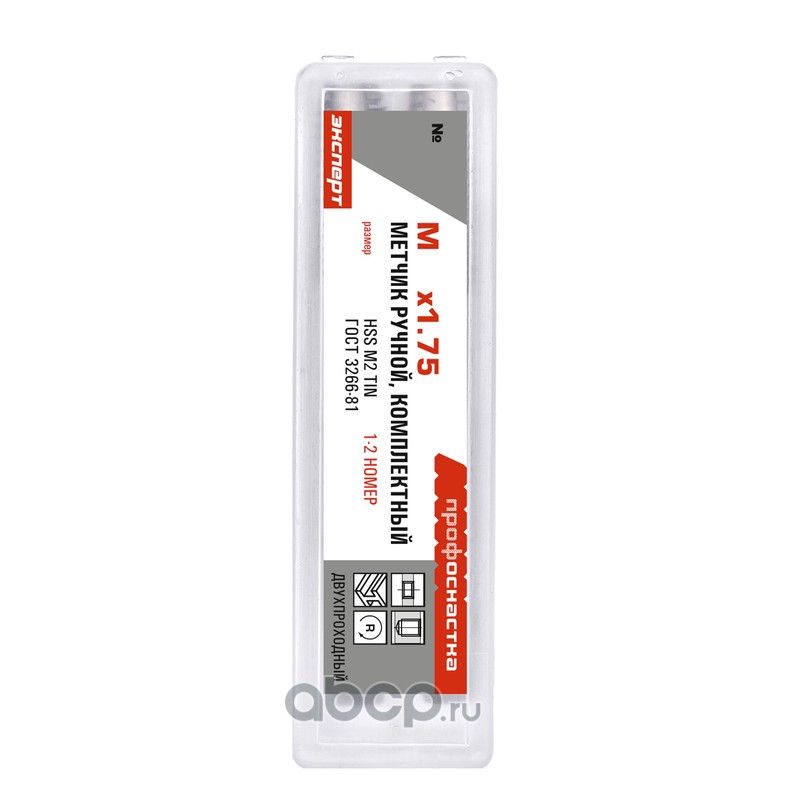 | ПРОФОСНАСТКА | 50311036 | Метчики 166 ком-кт двухпр. Эксперт М12*1,25 M2 TIN (6542) Пласт бокс 1/20/60 | ||