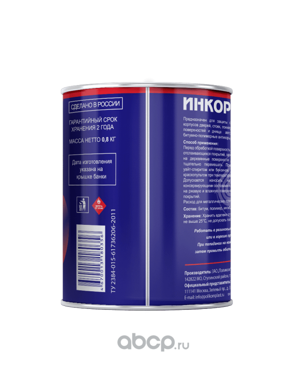 | ПолиКомПласт | PT180356 | Антикоррозионное битумное покрытие-праймер"Инкор" жест.банка 0,8 | ||