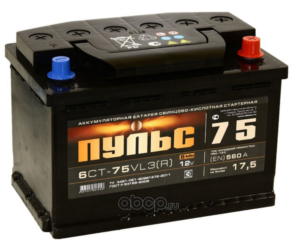 | Пульс | 6СТ750 | Батарея аккумуляторная 75А/ч 620А обратная полярн. стандартные (Европа) клеммы | ||