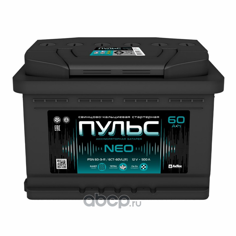 Пульс | ПС60ЗR | Батарея аккумуляторная 60А/ч 500А обратная полярн. стандартные (Европа) клеммы | |