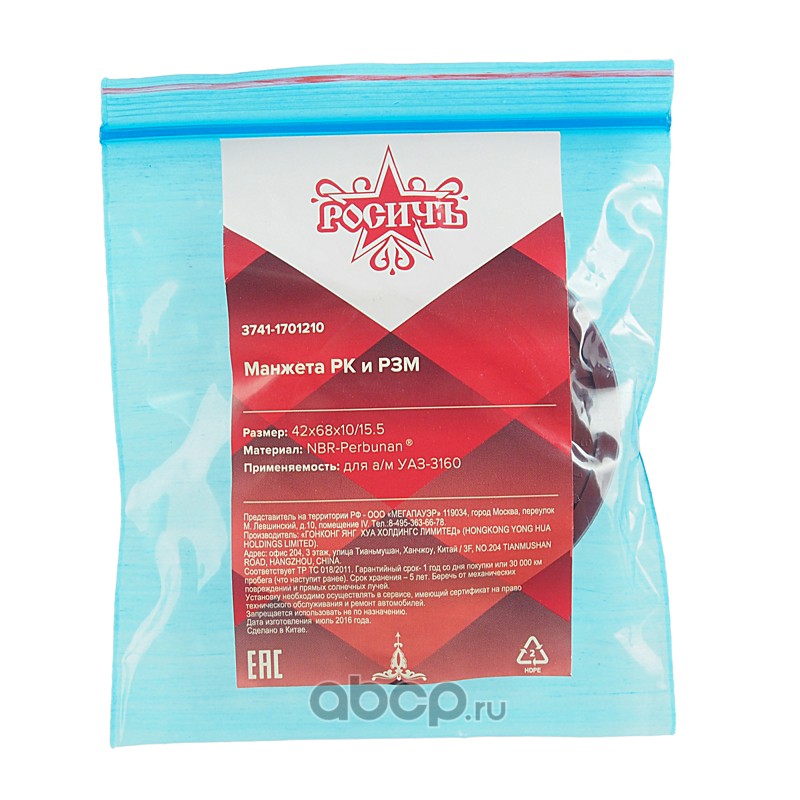 | РОСИЧЪ | 37411701210 | Сальник УАЗ-3160 Патриот РК и РЗМ 42х68х10/14.5 РОСИЧЪ | ||