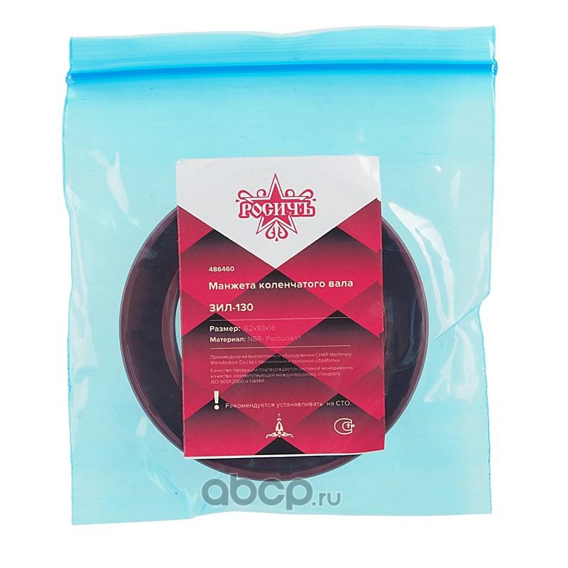 | РОСИЧЪ | 486460 | Сальник коленвала ЗИЛ-130 62х93х16 РОСИЧЪ | ||